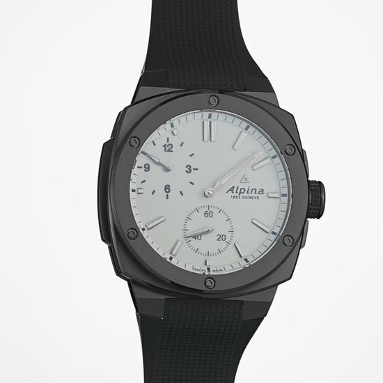 Au cœur de cette montre bat le calibre automatique AL-650, offrant 38 heures de réserve de marche et une fréquence de 28'800 alt/h. Fidèle à la tradition des instruments de mesure de haute précision, son affichage Regulator sépare les fonctions d'heures, de minutes et de petites secondes. Le cadran blanc est optimisé pour une lisibilité maximale grâce à un traitement lumineux. Les compteurs blancs des petites secondes à 6 heures et des heures à 10 heures contrastent avec l'aiguille des minutes centrale. Chaque aiguille est polie à la main, de couleur noir perlé, et remplie de matière lumineuse blanche, assurant une lecture instantanée, de jour comme de nuit.