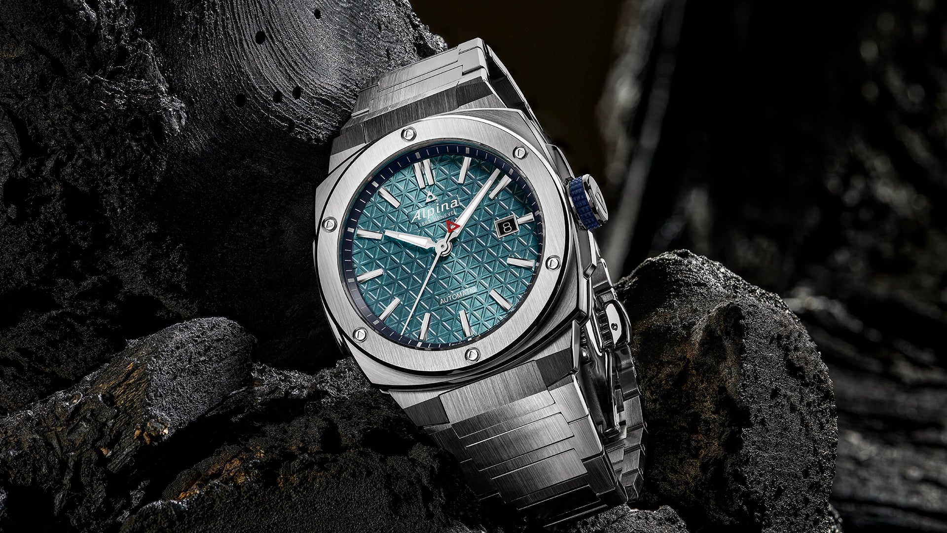 Son cadran bleu se reconnaît à son motif triangulaire et son anneau marine à marqueurs blancs. Les index et aiguilles argentés polis, avec traitement luminescent blanc, offrent une excellente lisibilité. Le calibre automatique AL-525 assure une réserve de marche de 38 heures et une haute fréquence pour une précision optimale au quotidien.
